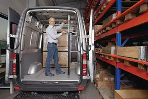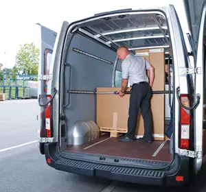 L'asta fermacarico regolabile in modo flessibile con la pressione di un tasto per furgoni, veicoli furgonati e telonati
