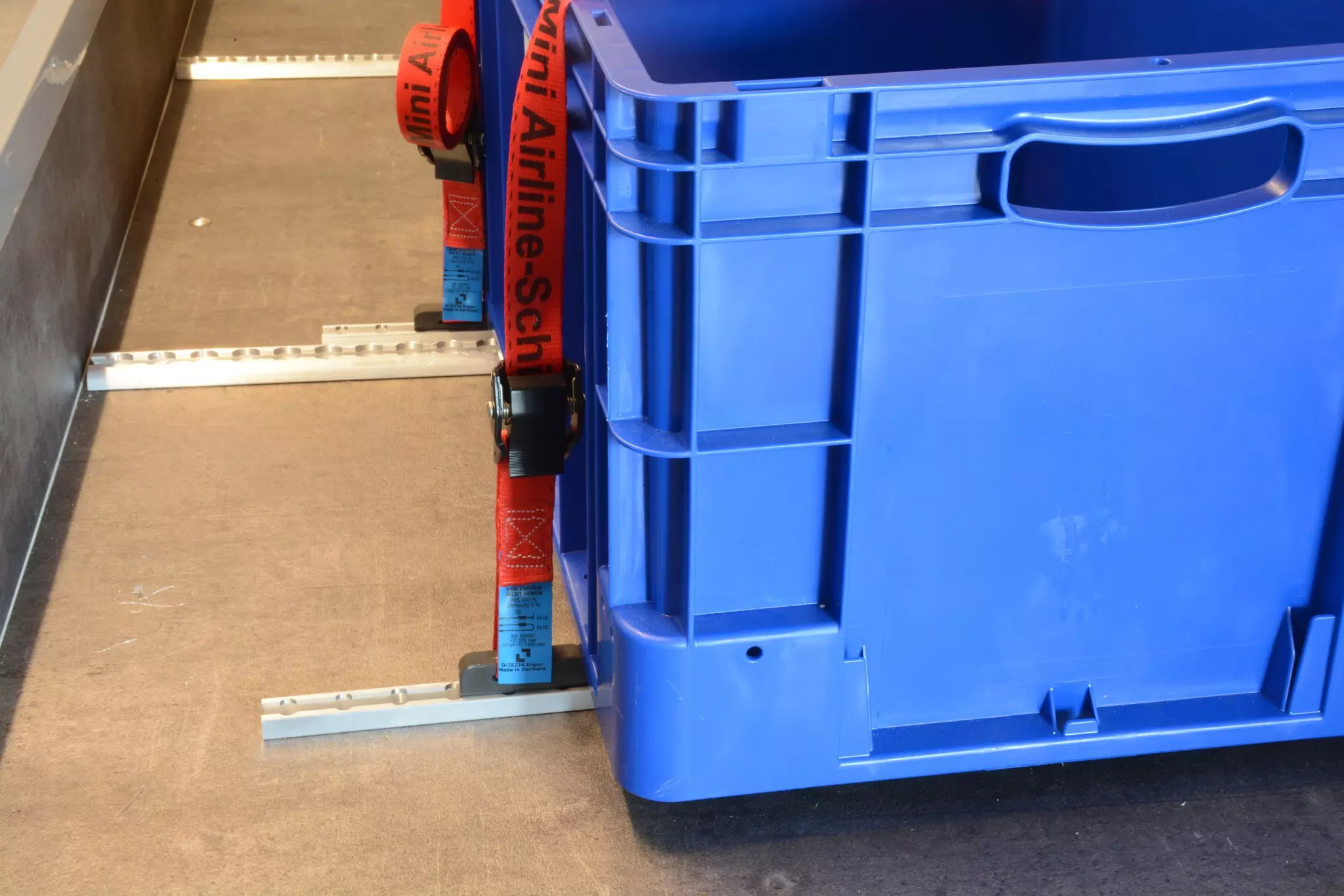 La mini guida Airline combina un design salvaspazio con una sicurezza affidabile, rendendola la soluzione perfetta per camper, biciclette da carico, veicoli da officina e attrezzature da trasporto compatte. Con un peso di soli 300 g al metro, offre la massima funzionalità con un peso aggiuntivo minimo. Ideale per gli spazi stretti, come ad esempio tra i cassetti, negli armadietti degli attrezzi o nella parte anteriore delle apparecchiature per veicoli. Nonostante le dimensioni compatte, la guida con una capacità di carico di 125 daN è adatta per carichi da leggeri a medi. Le cinghie e i fissaggi possono essere all'occorrenza rimossi in modo flessibile, garantendo la massima flessibilità. La mini guida Airline assicura il carico proprio negli spazi di installazione più stretti.