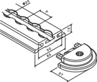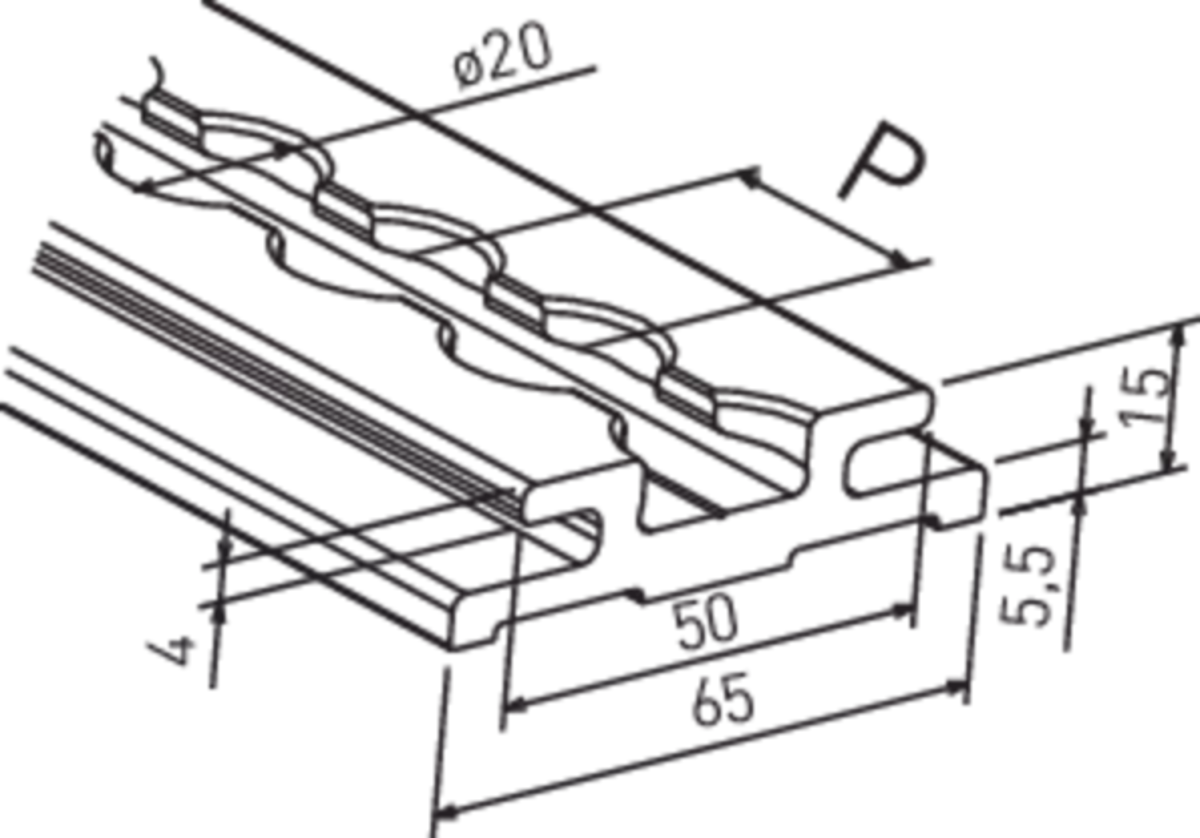 Tenzij anders aangegeven, bedraagt de rasterafstand P = 25,0 mm.