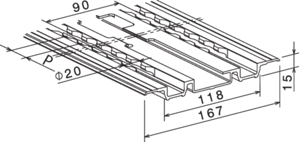 Tenzij anders aangegeven, bedraagt de rasterafstand P = 25,0 mm.