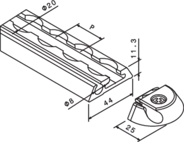 Basis Art.-Nr. 522477Airlineschiene Light 8 mm Keder