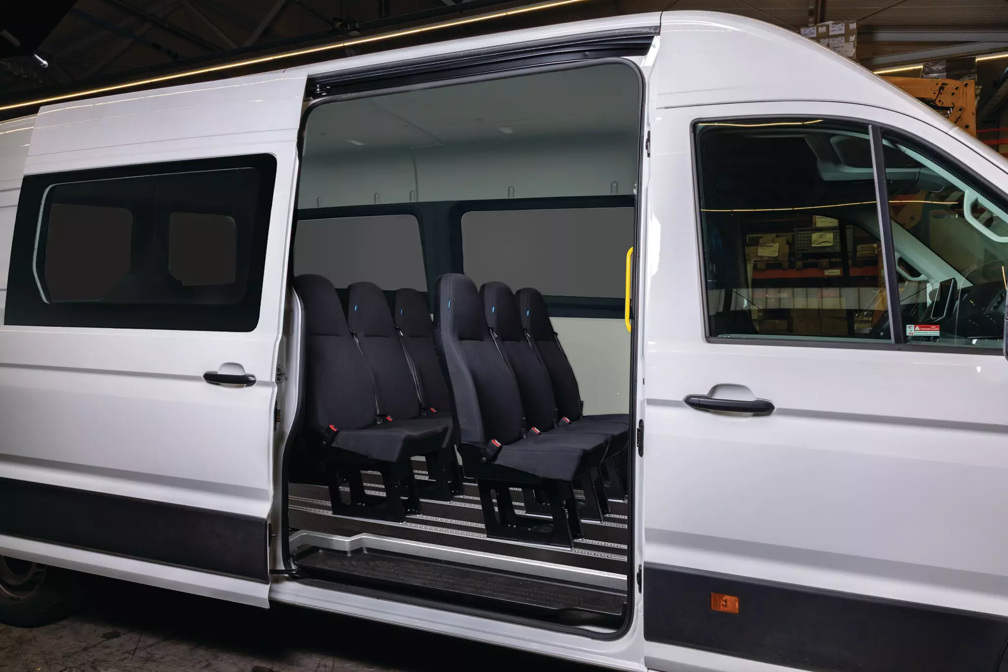 Zum Nachrüsten weiterer Sitzreihen bietet allsafe ein flexibles Sitzsystem, das aus einem M1-geprüften Sitz samt Bodenschienen, Sitzadapter, Sitzfuß und allen für die Zulassung erforderlichen Unterlagen besteht. Auf Wunsch bieten wir zusätzlich einbaufertige Komplettböden mit integrierter Sitzschiene an, die individuell auf Ihre Karosserie abgestimmt wird. Die Sitze können an beliebiger Position in Fahrtrichtung oder rückwärts in eine allsafe Doppelschiene eingesetzt oder entnommen werden. Sie lassen sich flexibel verschieben und komfortabel mit einer Hand bedienen. So ist ein bequemer und sicherer Personentransport möglich. Zwischen den Sitzschienen können nach ISO 10542 zugelassene Zurrpunkte für die Rollstuhlsicherung eingesetzt werden.